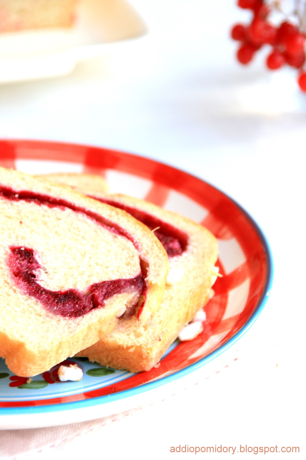 Wpadłam na pomysł upieczenia go po tym jak zobaczyłam ten chlebek u Eweliny i jeszcze tę drożdżówkę u Komarki. Poza tym, zawsze czegoś mi brakowało w takich drożdżowych brioszkowych chlebkach. Potrzebowałam owoców, jakiegoś pazura, zadry w tej skończonej, doskonałej formie. Żurawiny? Pasowały idealnie. Polecam gorąco.