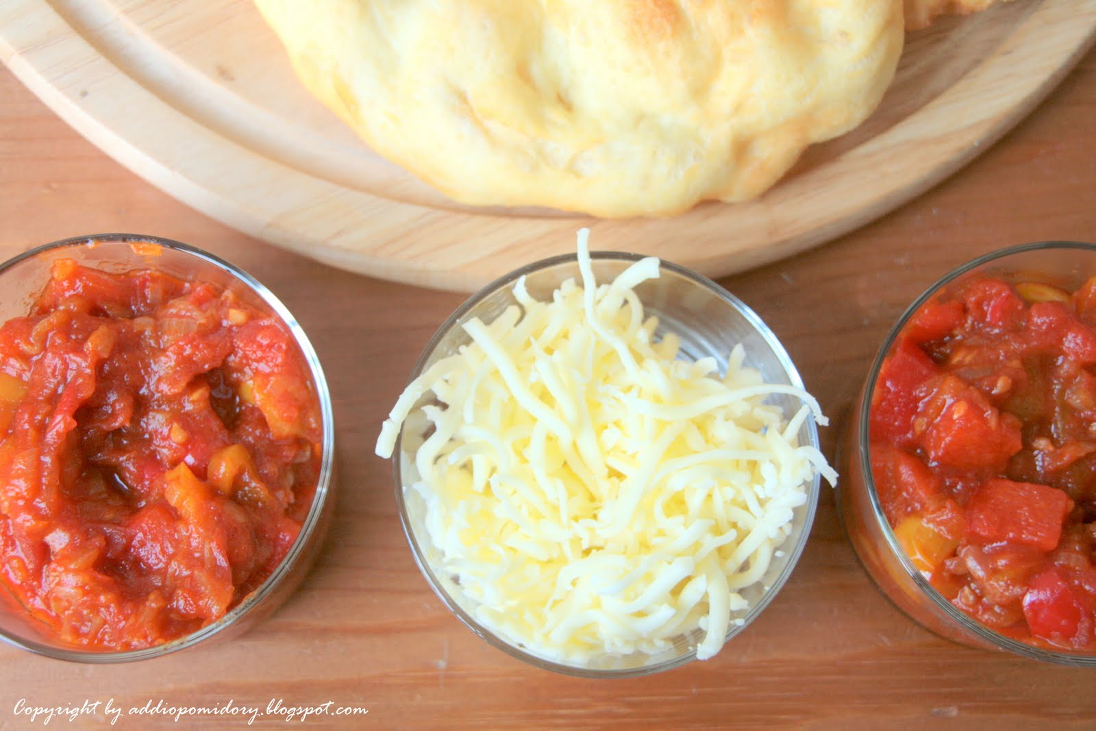 Przepis na nadzienie z papryki i pomidorów pochodzi z książki „Dania wegetarianskie” M.Kintrup, przepis na ciasto znalazłam tutaj.