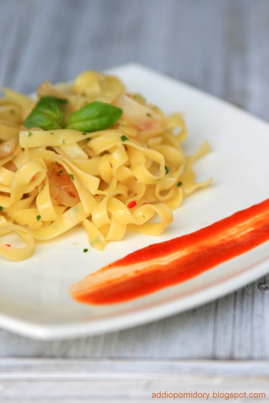 naciskiem noża. Do tego oliwa. I ulubiony makaron, lub taki, który się ostał. A