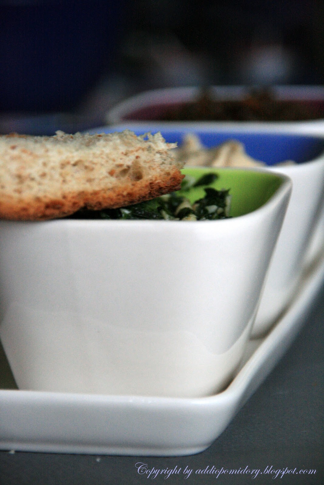 Chleb wygląda imponująco, naprawdę jest wspaniały. A pasty… Do wyboru do koloru! Choć ja zapewne wybrałabym hummus, bo absolutnie za nim przepadam. Choć tak właściwie, to reszta z nich jest dla mnie zagadką. Może więc właśnie pośród nich znalazłabym swój typ? 😉