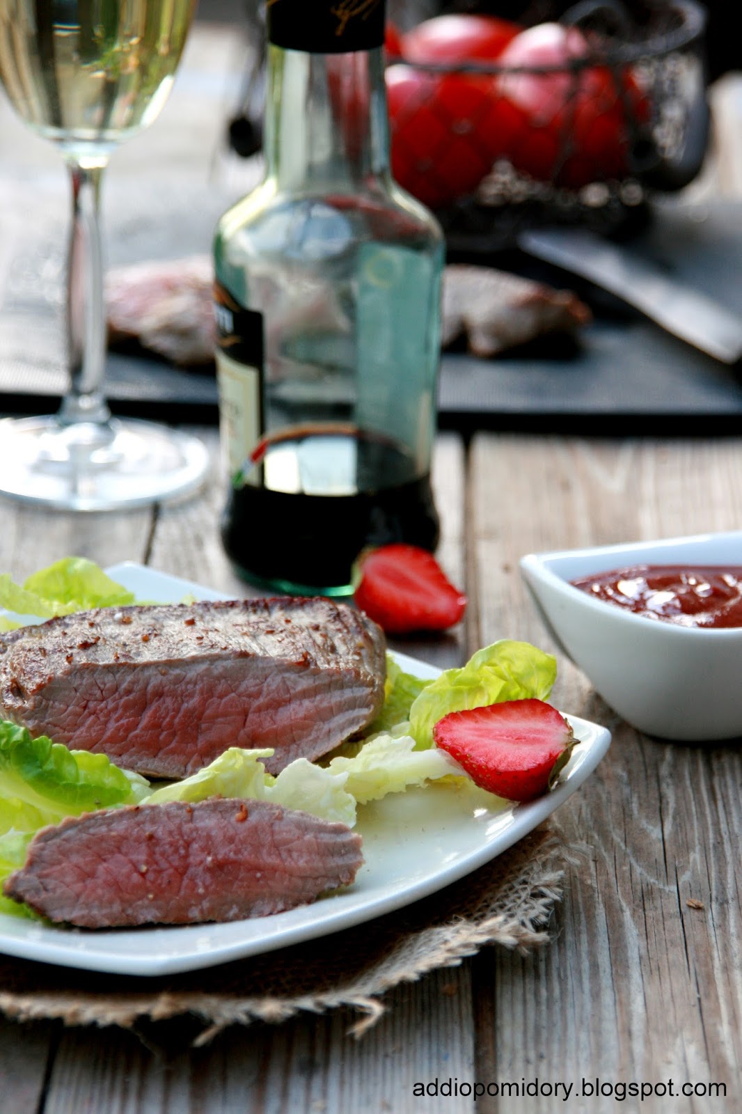 uwielbiam polaczenie truskawek z pomidorem. a jak jeszcze dodamy do tego mieso to juz bede w siodmym niebie 😉 cudowny sos 🙂