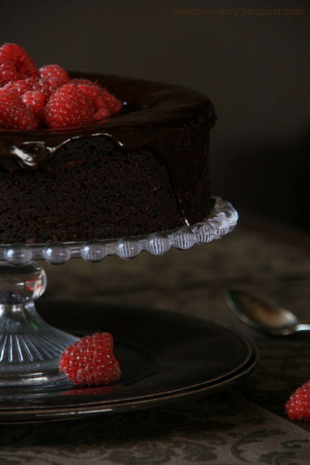 Przepiękny tort! Piękny czekoladowy kolor i do tego malinki, mmmm. Uwielbiam takie czekoladowe zdjęcia i pozostaje tylko sobie wyobrażać jak smakuje sam tort :]