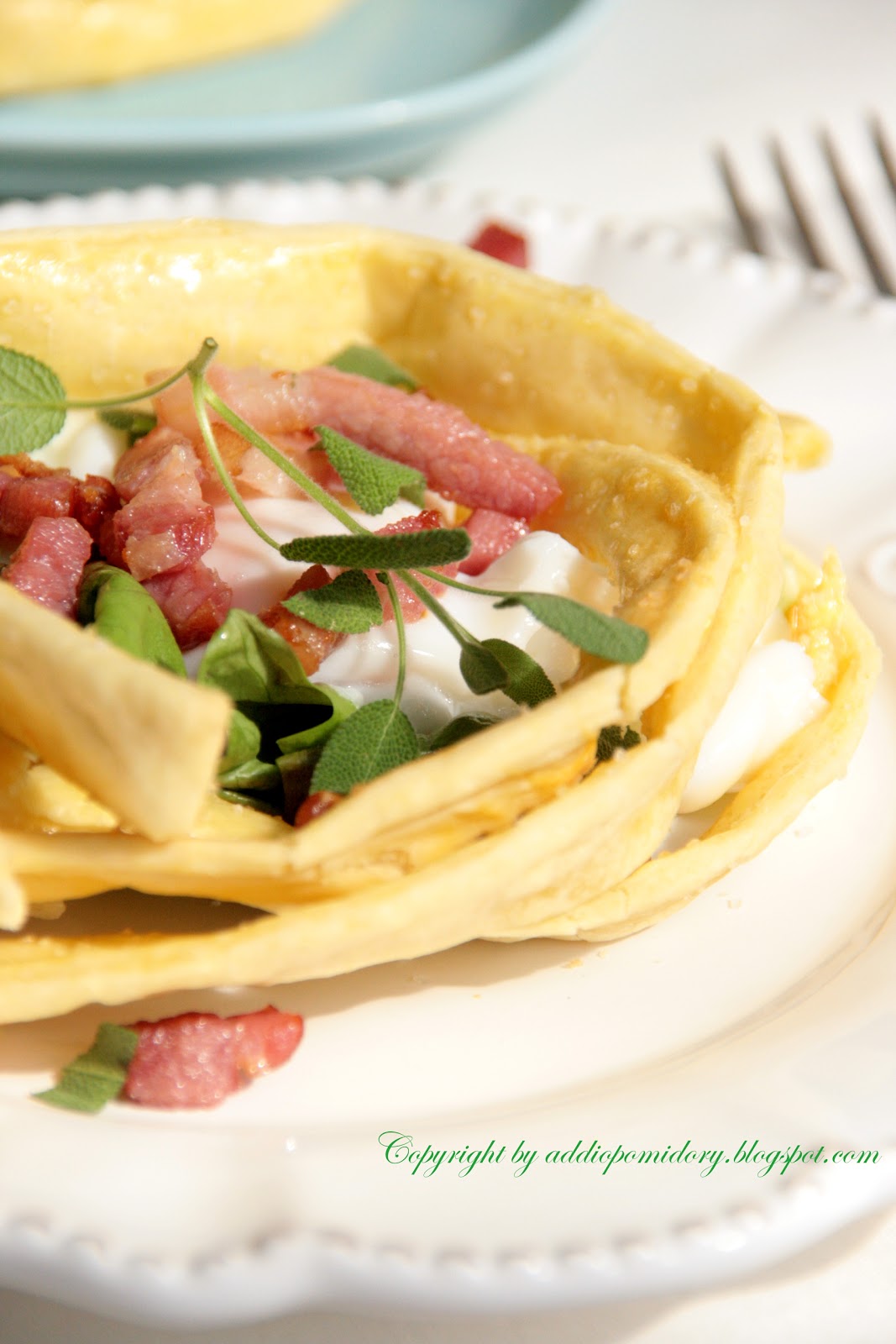 Jajka w koszulkach w gniazdkach z ciasta francuskiego