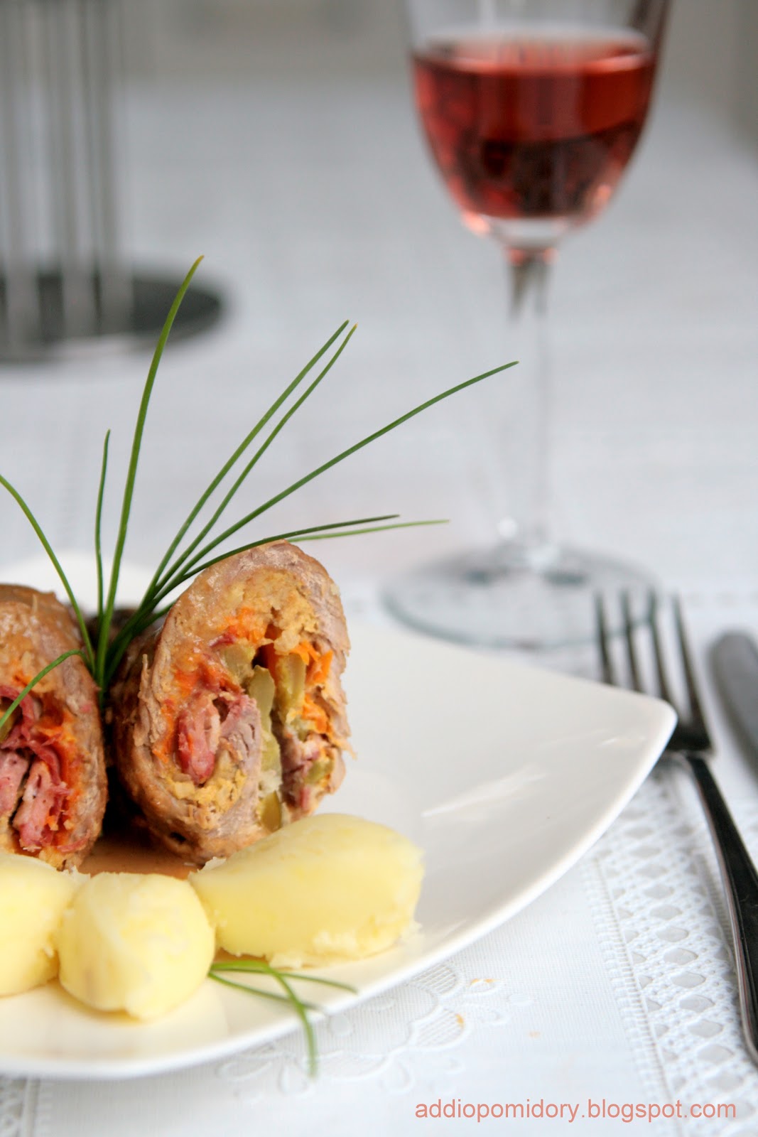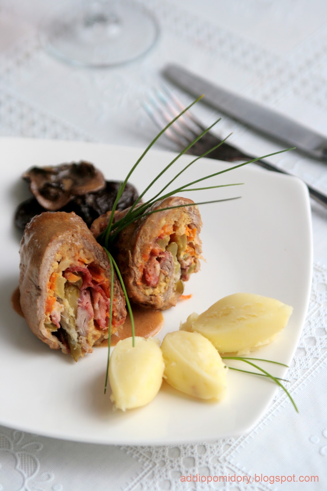 Dziś polecam Waszej uwadze przepis niezwykły. Kiedy pada hasło zrazy, niby wszystko wiadomo. Wołowina, ogórek kiszony, kawałek chleba, chrzan, musztarda… i trochę roboty. Ten przepis jednak ma w sobie taką obfitość składników w ciekawej kombinacji, przypominającej mi trochę sposób przygotowania włoskich involtini, że jest naprawdę wyjątkowy i wart spróbowania. Jeśli szukacie przepisu na świąteczny, tradycyjnie polski obiad – ten nadaje się idealnie. Do wcześniejszego przygotowania. Polecam gorąco.