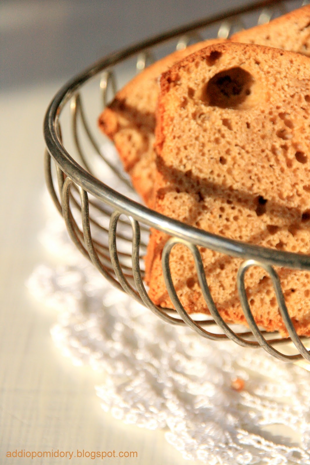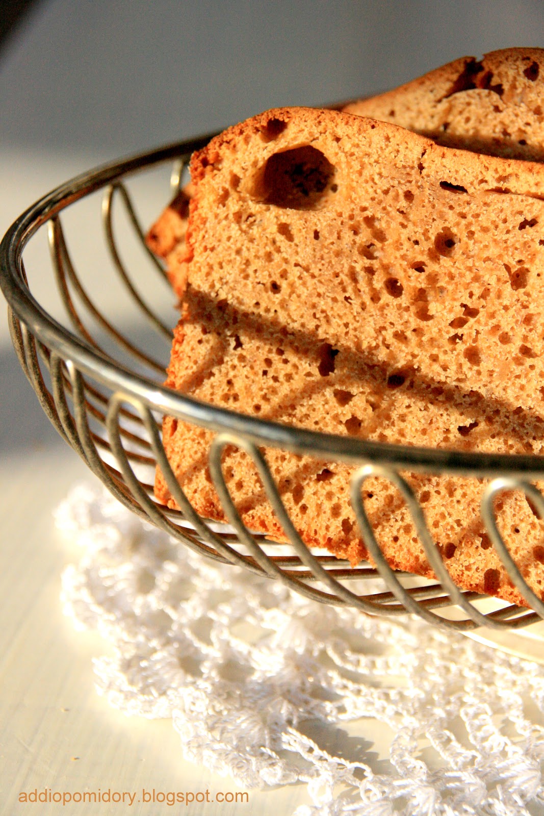 Ten chleb mnie zaskoczył. Wymyśliłam go sobie, bo potrzebowałam czegoś do kawy. Czegoś, co mogę sobie pokruszyć na spodku przy filiżance lub zatopić na moment w kubku gorącej kawy z mlekiem. Zajadać powoli, codziennie po trochu. Czegoś co syci i pachnie już świętami. Zaskoczył mnie bo wyszedł właśnie taki. Nie jest twardy ani zbity, nie jest też za słodki. Jest za to lekki, pełen smaku i kruchy. Upieczony w niedzielę wciąż jest tak samo świeży. Zostało jeszcze kilka kawałków. Na jutro.