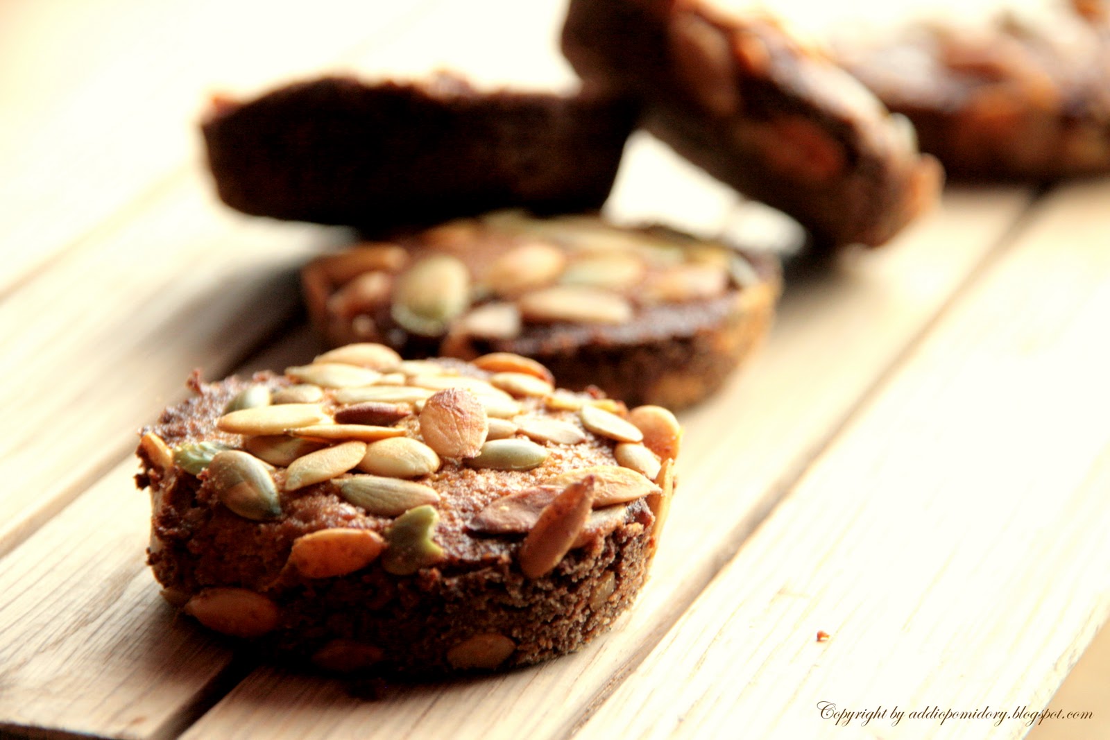 Czy i Wam zdarza  się kupić jakiś produkt z konkretnym przeznaczeniem, które gdzieś umyka po powrocie do domu? Pozostaje konsternacja upchnięta gdzieś w kącie i produkt, który czeka na swoje pięć minut. Aż do końca przydatności. I wtedy zaczyna się nerwowe przeszukiwanie przepisów, by jakoś tę pomyłkę naprawić. Mnie zdarza się też kupić czegoś za dużo z myślą, że i tak zjemy wszystko. Prędzej czy później. I właśnie teraz nadeszło to później dla niespełna kilograma pestek dyni, które podjadam i, których końca nie widać.