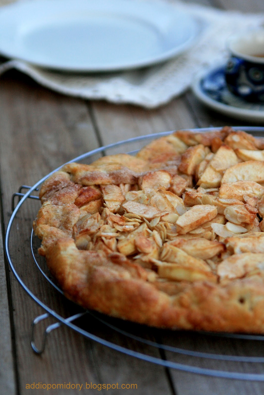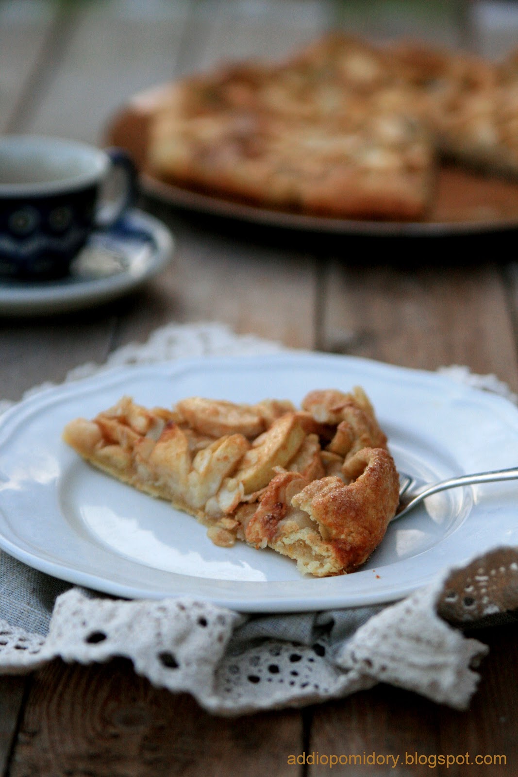 Jeszcze tylko – zaproszenie na tartę. Pierwszy raz upiekłam ją w wersji ze  śliwkami. Wystarczyło może pół godziny, by zniknęła. Zjedliśmy ją we czworo. Do ostatniego okruszka. Chrupiąco-krucha, z soczystymi śliwkami i migdałową nutą. Pycha. Następne były znowu ze śliwkami. Dziś przyszedł czas na jabłka. Ale można ją też upiec z brzoskwiniami czy gruszkami. Polecam gorąco.