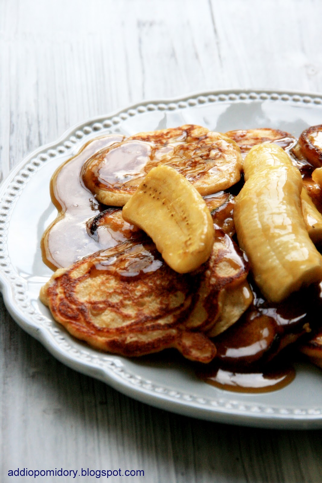 Jak dla mnie wymarzone na podwieczorek. Słodkie banany w karmelu, trochę zdrowia z placuszków owsianych…:)