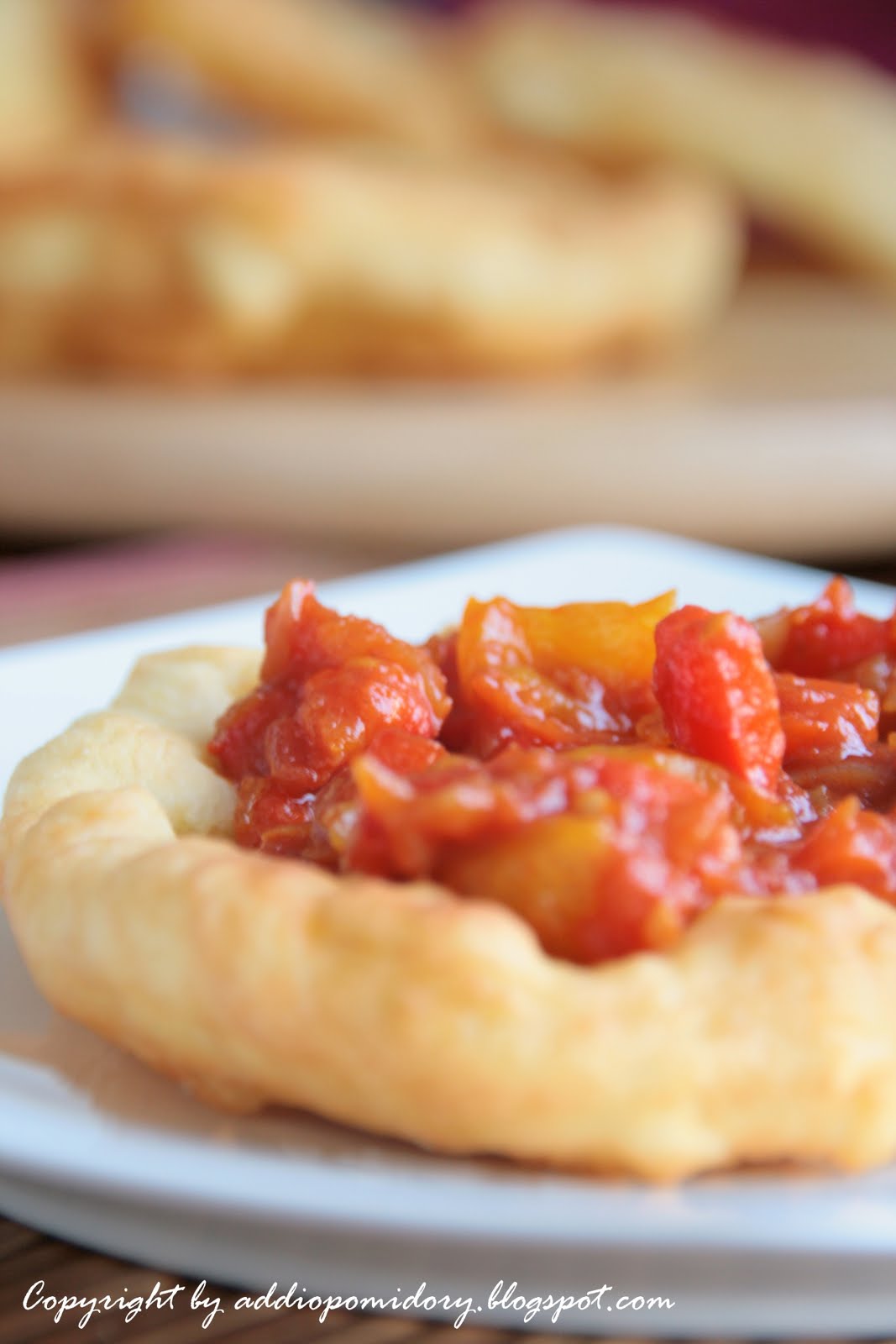 Przepis na nadzienie z papryki i pomidorów pochodzi z książki „Dania wegetarianskie” M.Kintrup, przepis na ciasto znalazłam tutaj.
