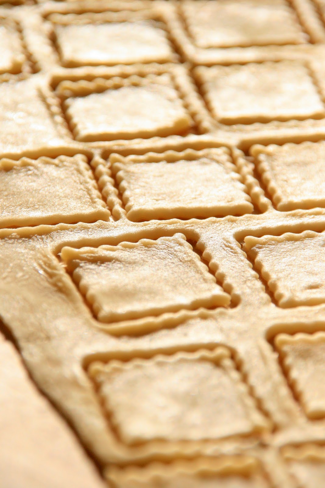 4. Wycinamy z niego kwadraciki lub romby radełkiem, foremką (ja użyłam foremki 2×2, ale możecie użyć większej).