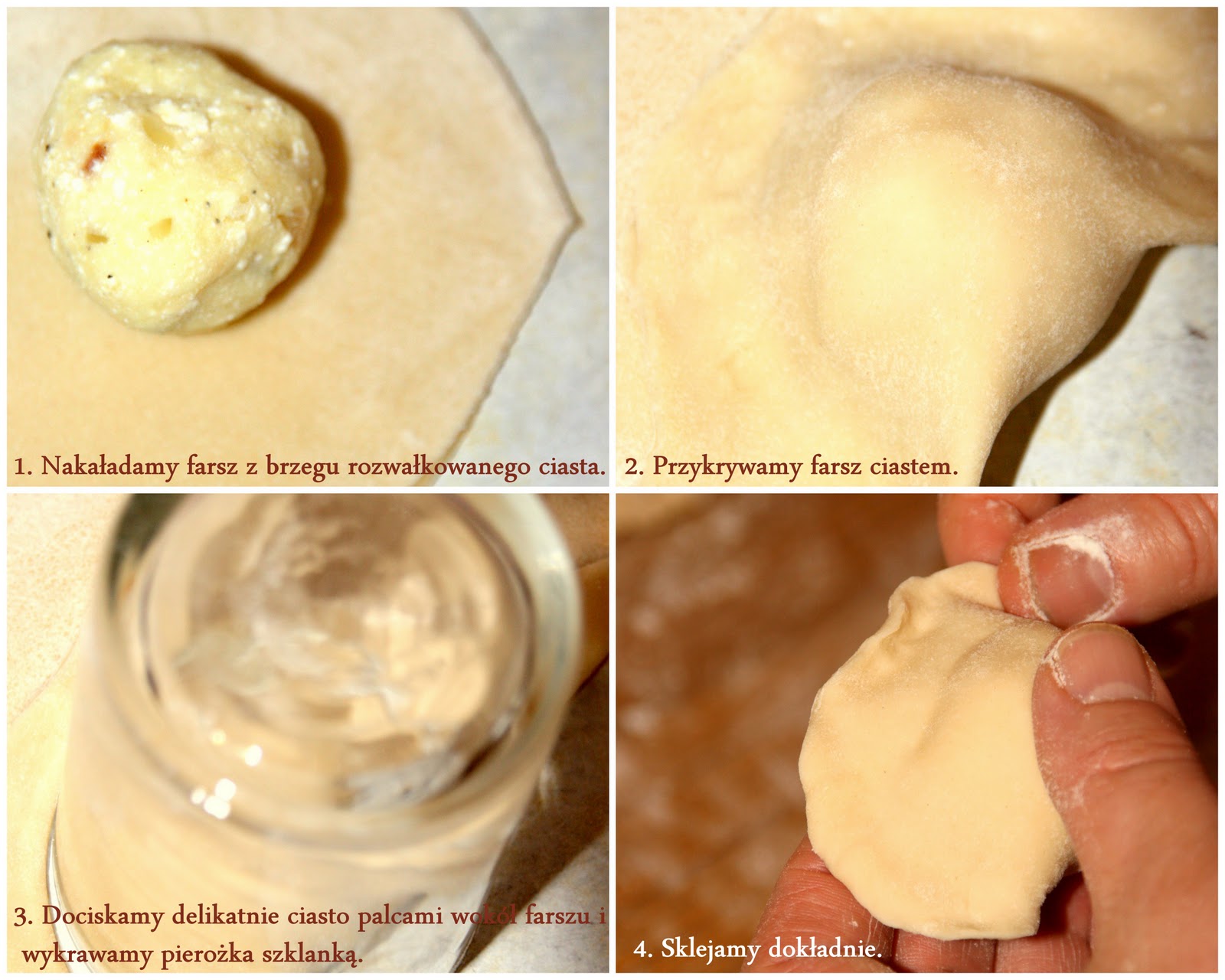 Metoda podobna do włoskiej na rawioli, też się przykrywa jedną warstwę ciasta z farszem drugą.