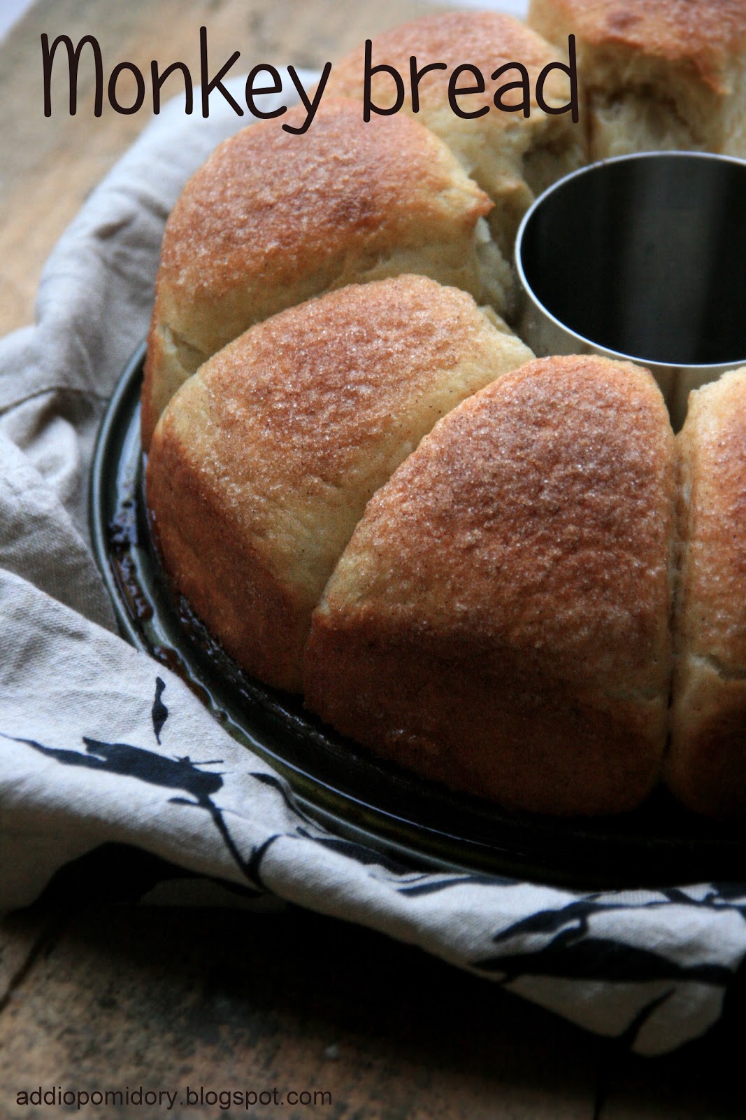Skąd wzięła się jego nazwa, nie jest pewne. Nazywany jest także sticky bread, african coffee cake, golden crown, pinch-me cake, bubbleloaf. Na starym kontynencie podobnie – pain de singe. W Stanach podaje się go na śniadanie. Posypuje zawsze cukrem i cynamonem ale i też posiekanymi pekanami, jeśli szukamy odmiany.
