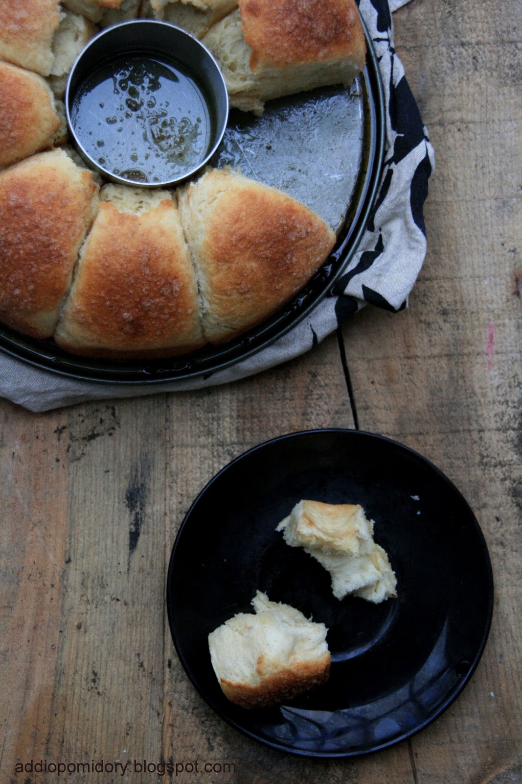 Troszkę przypomina mi pieczone pączki :] Ciekawa jestem tego smaku i konsystencji, jest raczej twardy czy bardziej mięciutki i puchaty? Zdjęcia prezentują się zjawiskowo i bardzo zachęcająco 😀