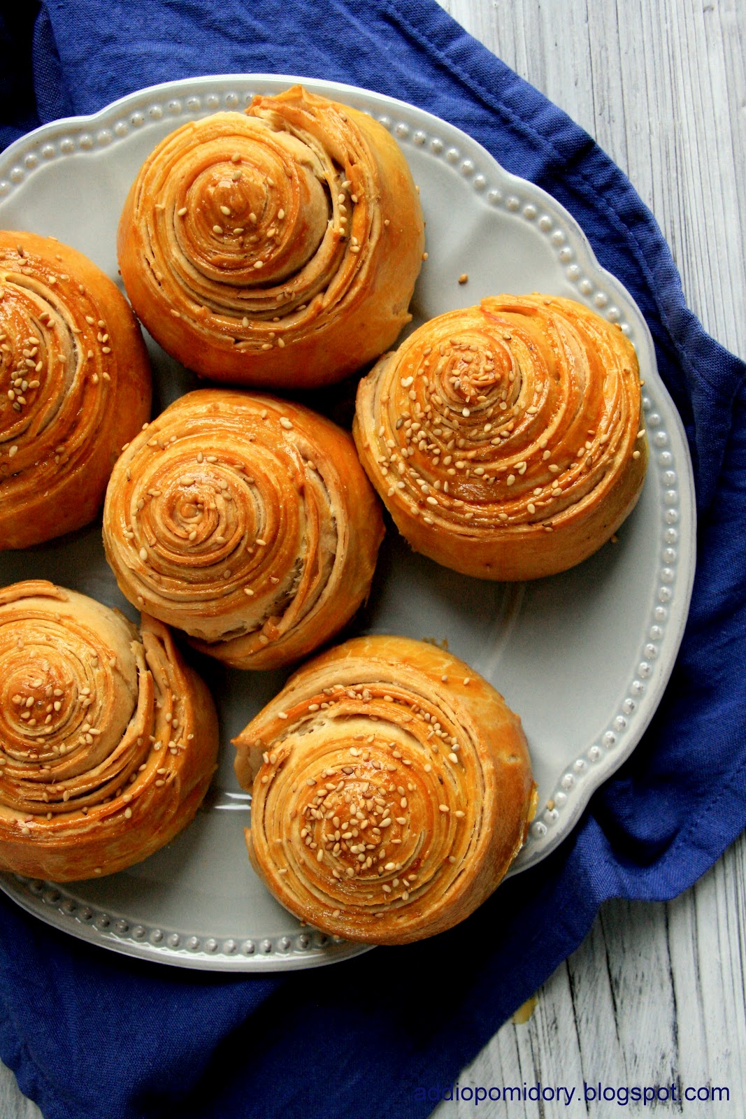 Bułeczki śliczne, ich listkowanie urocze, super, ze pokazałaś je od spodu. A zdjęcie surowego jeszcze ciasta po lewej stronie zwiniętego w rulonik sprawia, że naprawdę chciałabym je zagniatać…, bo wiesz, że mogłabym je już piec, nawet bym zdążyła, ale co innego muszę… Może w nowym upiekę:)