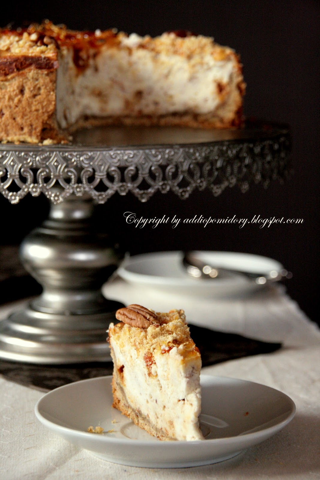 A Was zapraszam dziś na sernik. Chciałam, by nie był taki jednoznaczny, gładki, kremowy. Więc jest chrupiący. Dzięki orzechowej pralinie*. Jest też wilgotny i raczej lżejszy. I w smaku pozostaje przede wszystkim sernikiem z niepokojącą orzechową nutą. Polecam serdecznie.