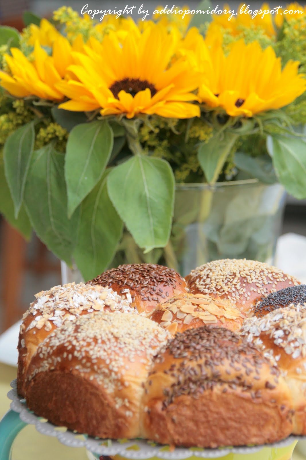 I to wiadro słoneczników… Urocze bardzo, zawłądnęło moim sercem – bułka słonecznik i słoneczniki prawdziwe – cudo…!!!