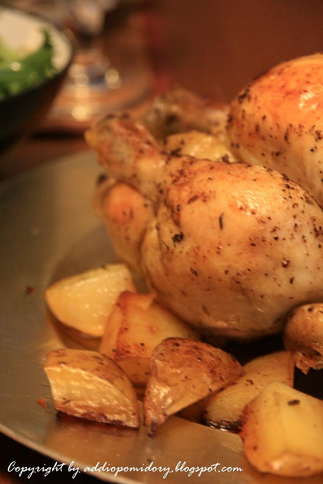 Kurczaka upiekłam jednocześnie z ziemniakami w brytfannie. Tak oto powstała prawdziwie aromatyczna i niecodzienna poniedziałkowa uczta.