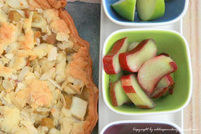 6. Dokładnie osączamy rabarbar, mieszamy go z jabłkiem.