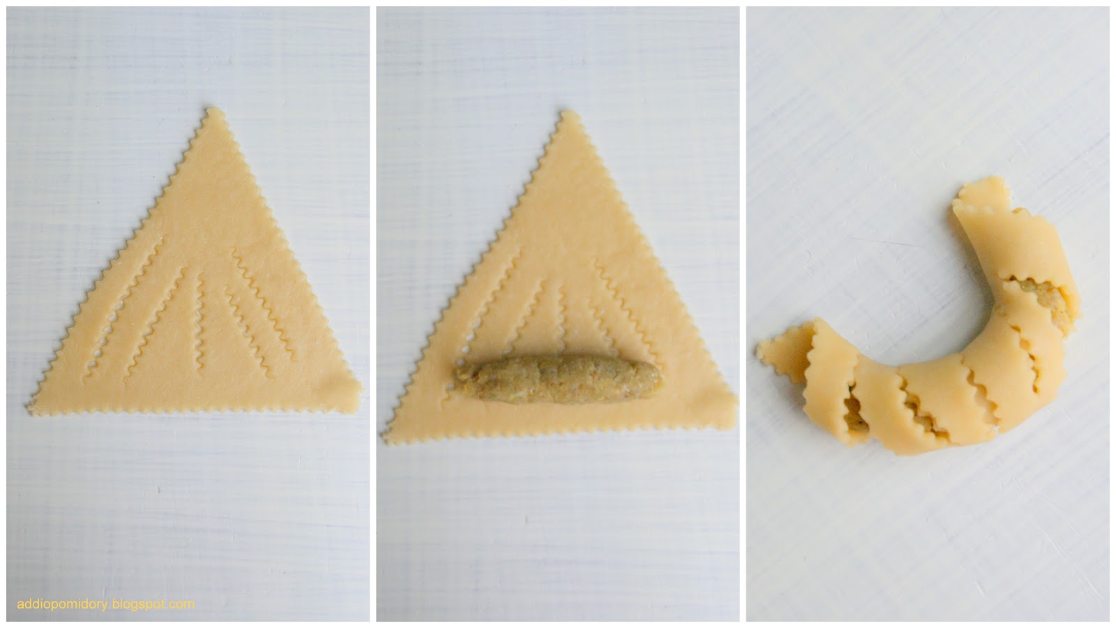 formujemy rulonik długości mniej więcej podstawy trójkąta i zwijamy do postaci