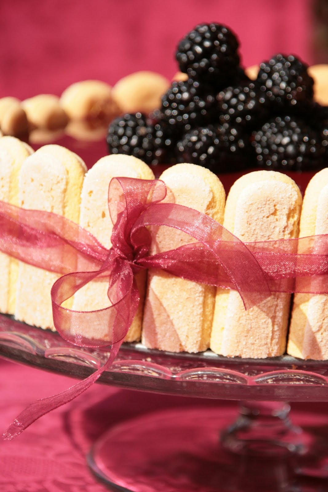 10. Wyjmujemy ciasto z formy, dekorujemy biszkoptami i owocami.