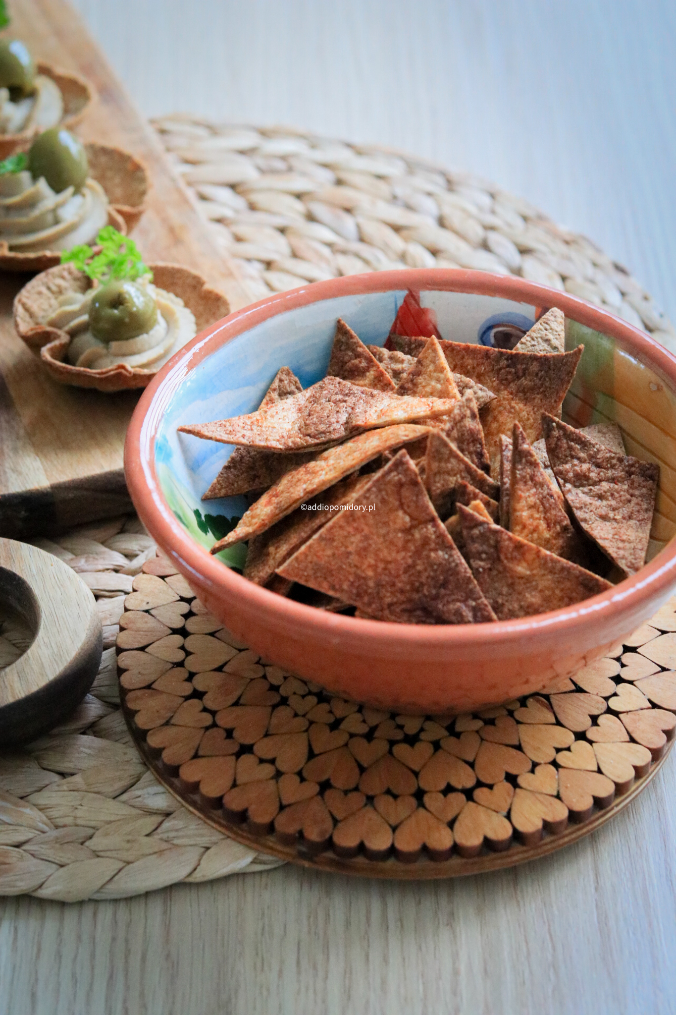 6. Z powstałych ścinków robimy „chipsy”. Możemy je jeszcze pokroić, wedle uznania. Smarujemy je oliwą, wykładamy na blaszce i pieczemy do zrumienienia. Po wystygnięciu przechowujemy podobnie jak łódeczki. Można je również po posmarowaniu oliwą oprószyć papryką w proszku. Takie lubimy najbardziej.