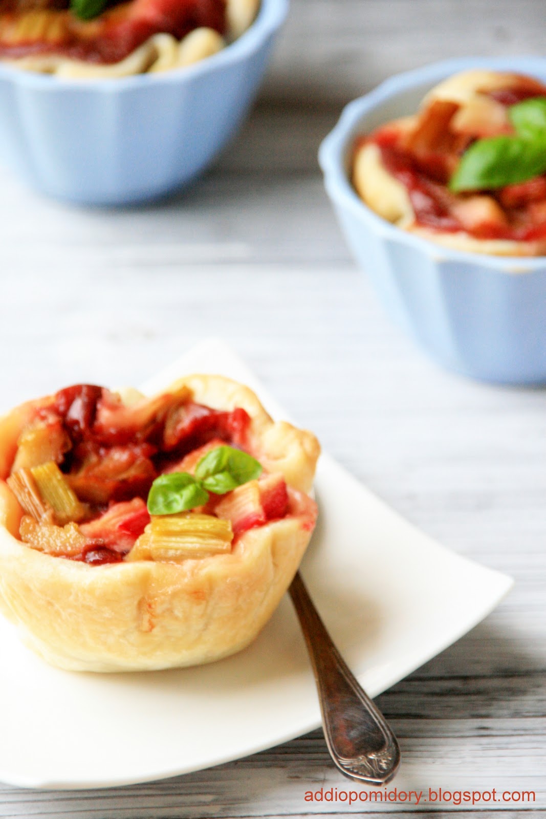 Truskawkowy flan z rabarbarem i bazylią